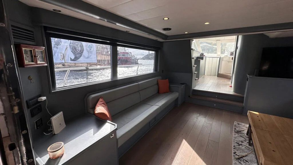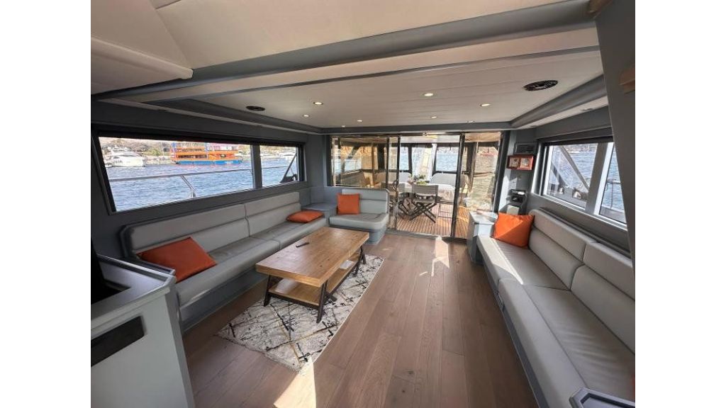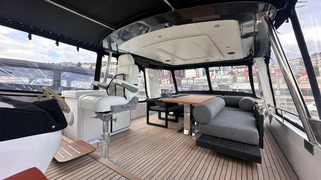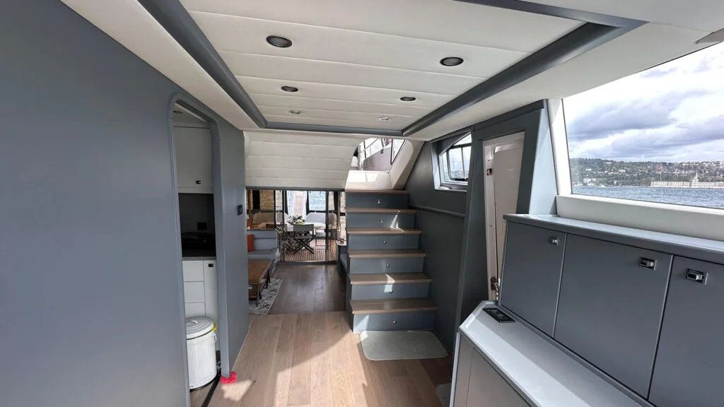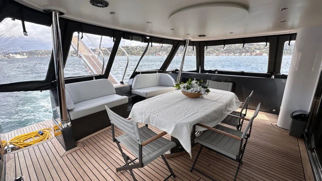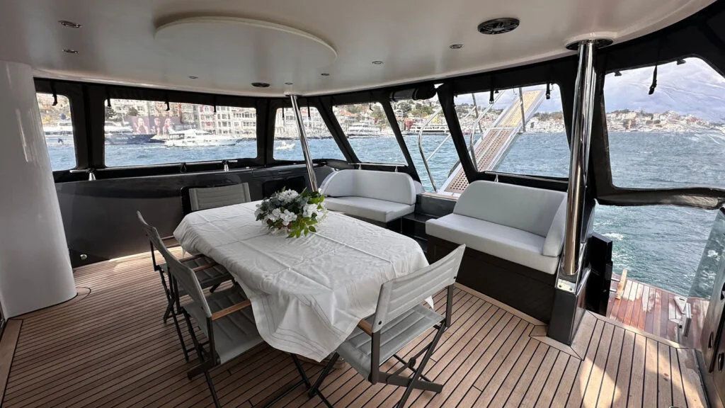 The wide outdoor seating areas provide panoramic views of the Bosphorus, while the interior spaces offer a calm and elegant environment ideal for relaxation, dining, or private conversations. Every detail on board has been carefully considered to enhance guest comfort and create a premium experience.